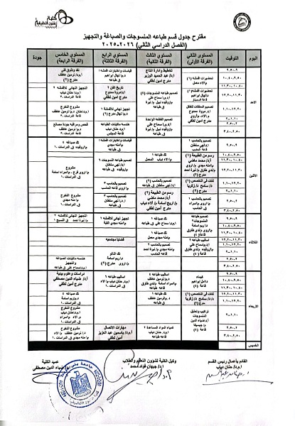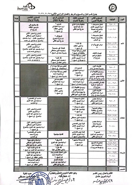 جدول امتحانات الفصل الدراسي الثاني