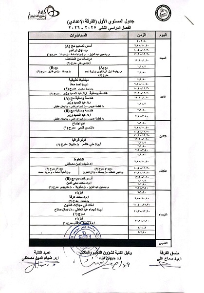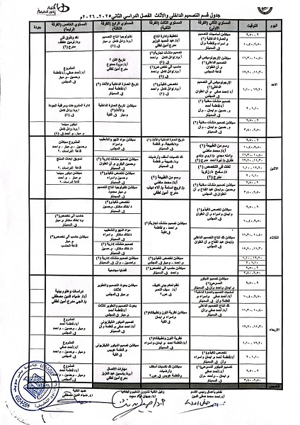 جدول امتحانات الفصل الدراسي الثاني